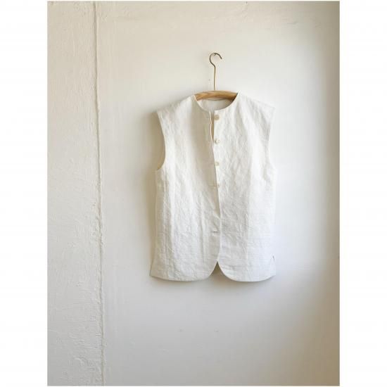 一見、裏地付きシンプルなベストですが、首回り、肩幅、アームのサイズ感をこだわりデザインしました。